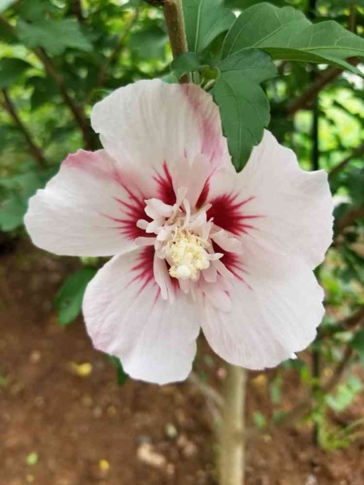 むくげ、夏の🌺ですね🎵家に咲いてるのは赤い🌺です😅ビス王子さんとこの色合いいいですね✨