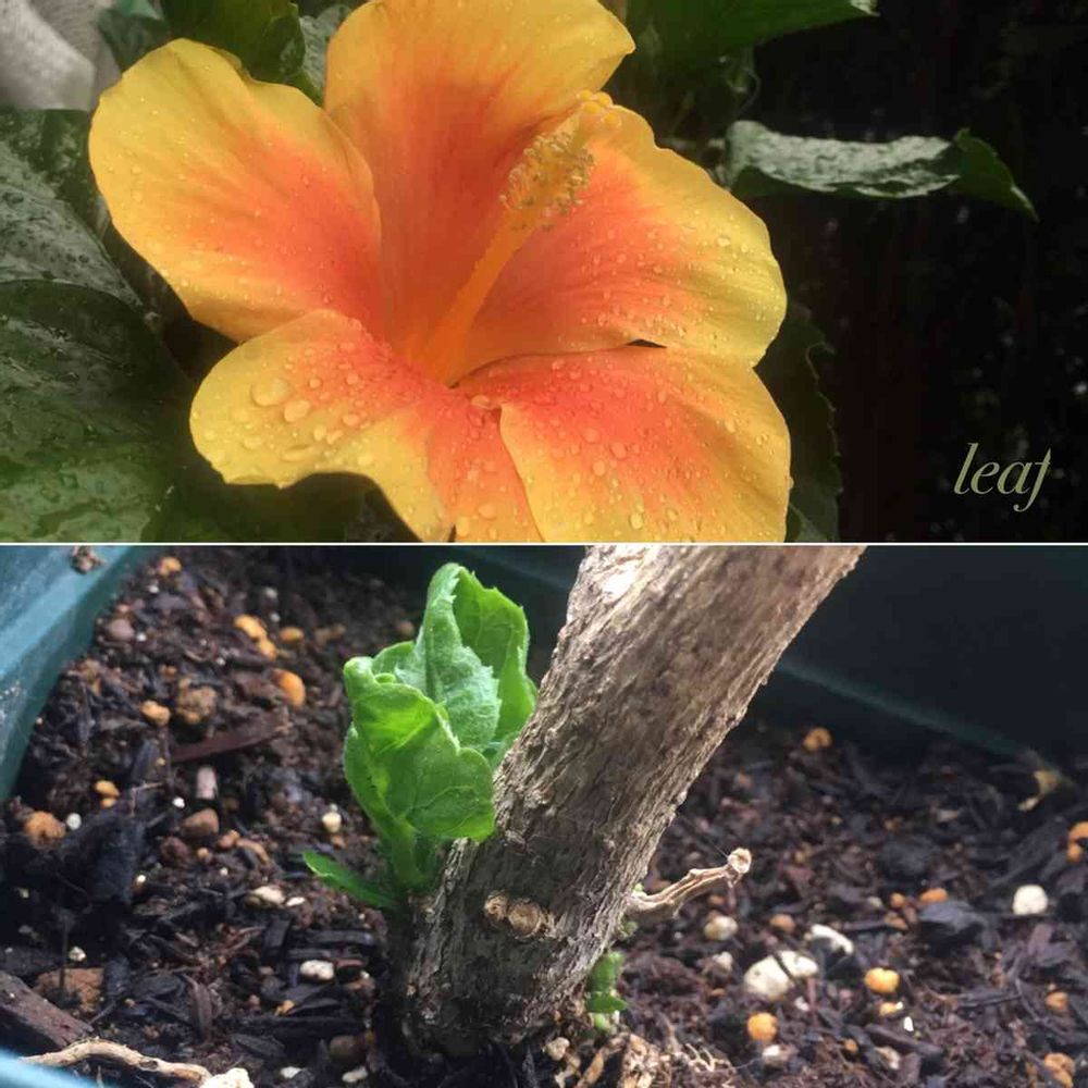 旦那様のプレゼント🎁のハイビスカス🌺、復活の兆しがあって良かった(^^)