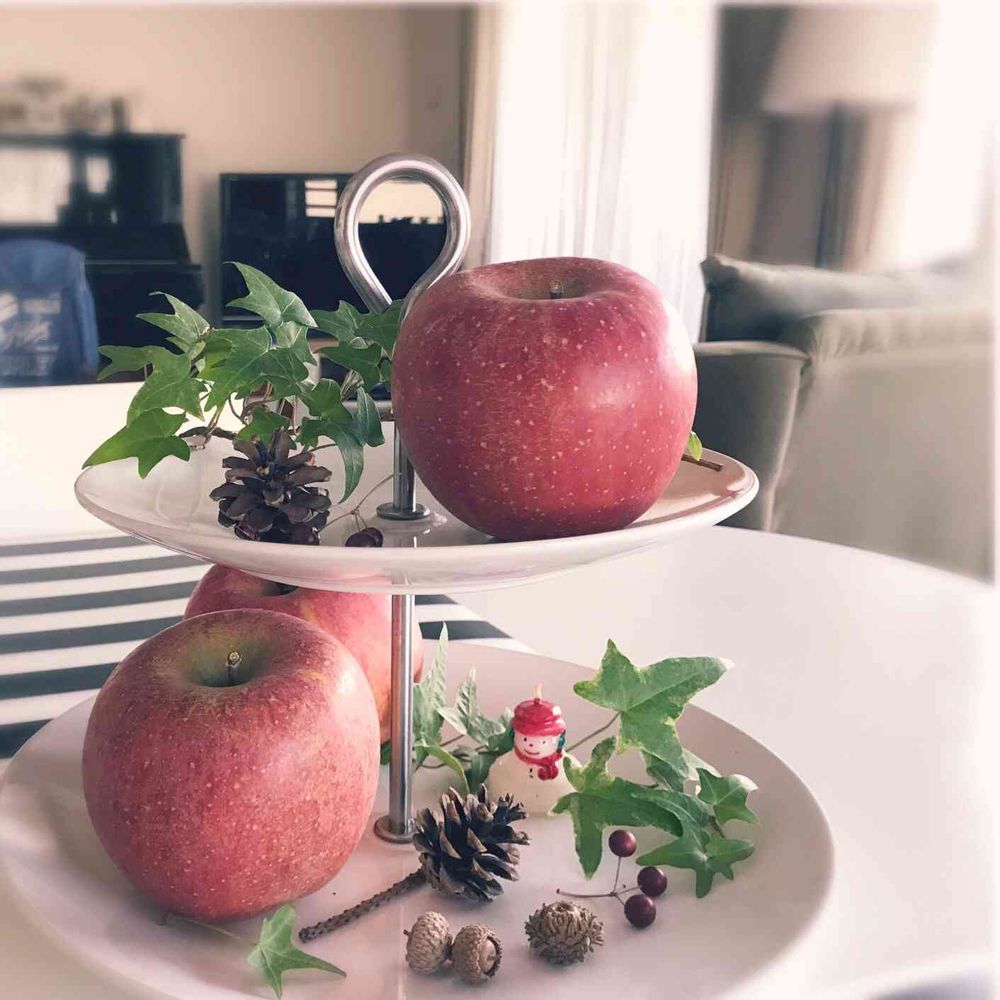 りっぱなリンゴ。子供たちにかじられちゃう前に、ちょこっとクリスマスっぽく⛄️目でも楽しみましょ❤️