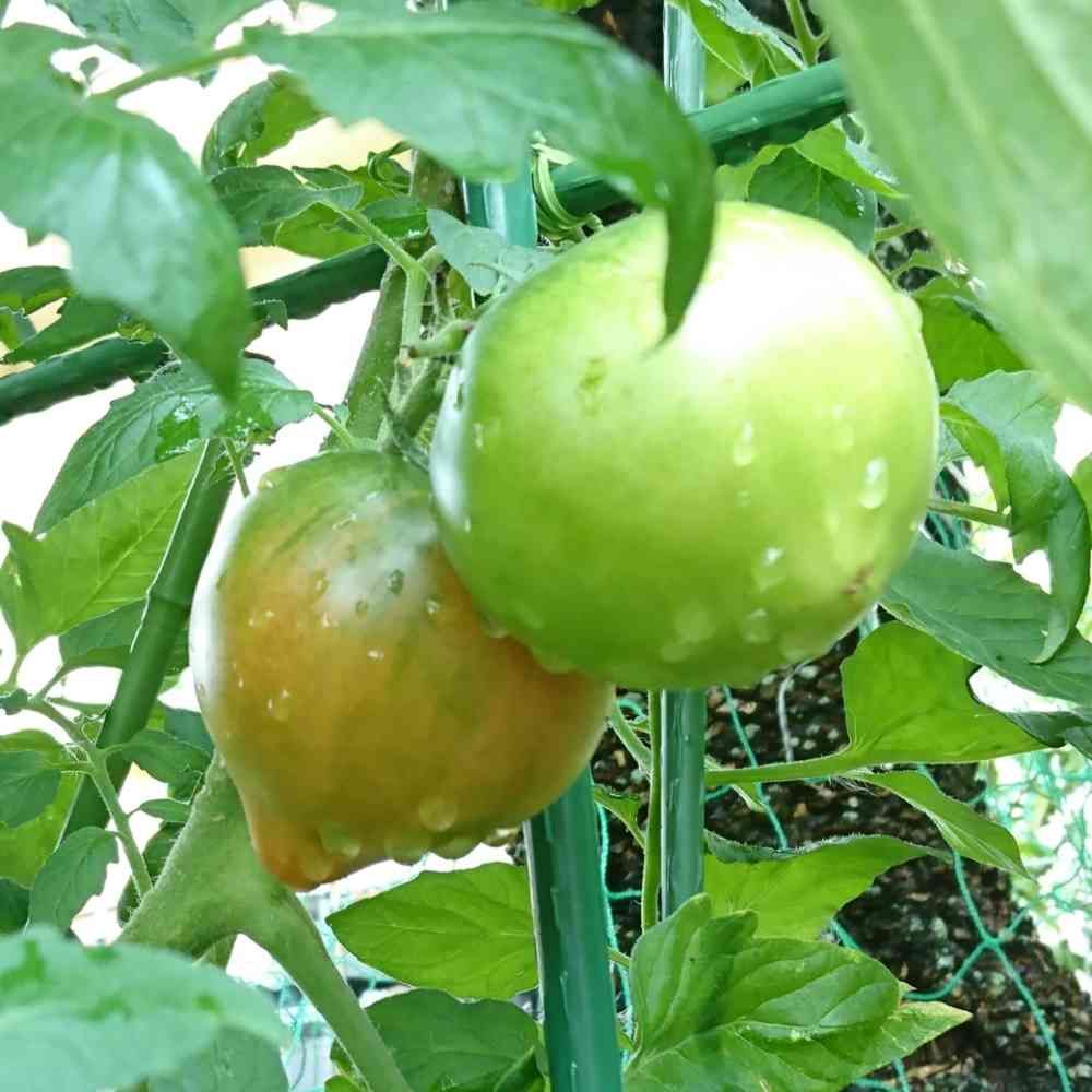 2日前に見たときは全然そんな兆しも無かったのに 突然色づき始めました🍅