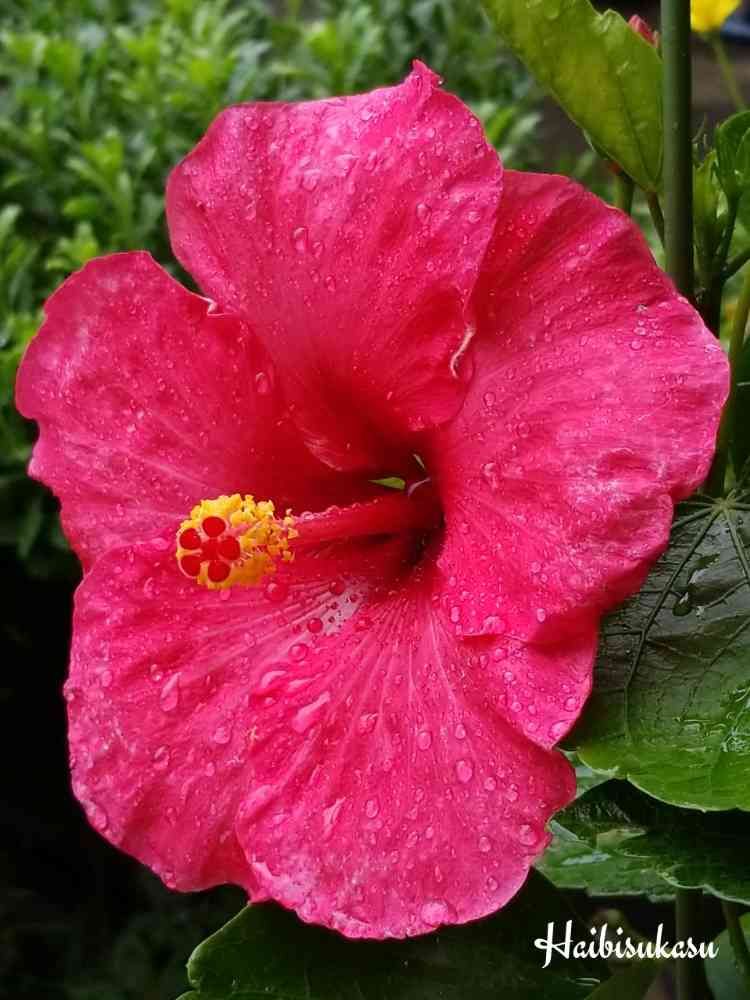 雨に濡れながら大輪のハイビスカス お花をさかせていました