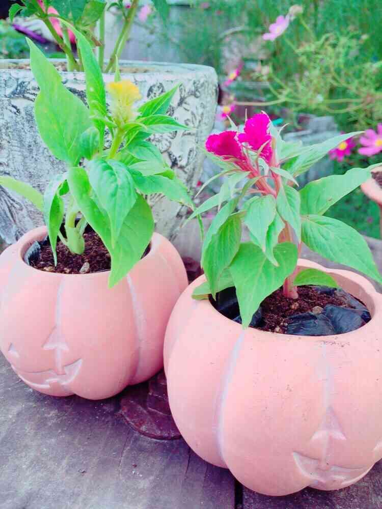 カボチャの素焼き鉢に入れて見ました^_−☆