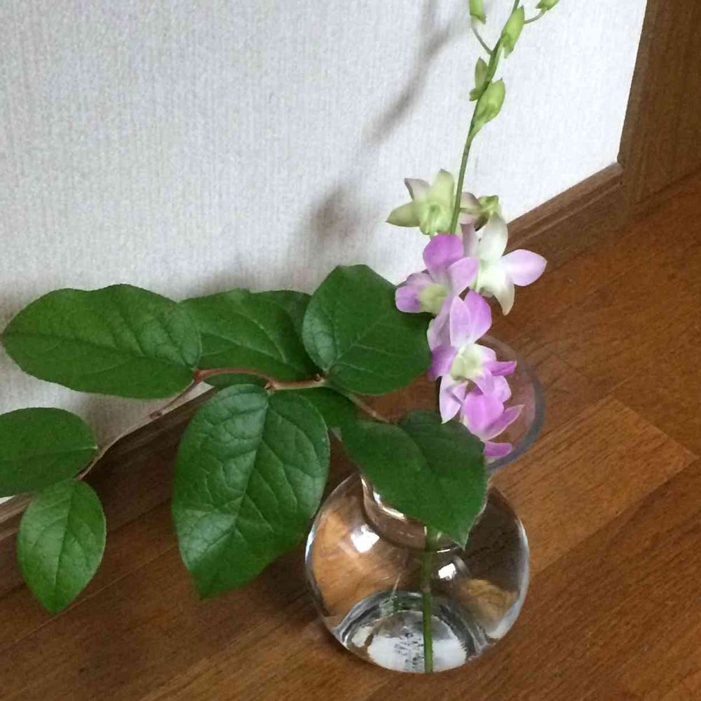 スーパーのお花コーナーで買ったデンファレとうちにあったグリーンをシンプルに✨