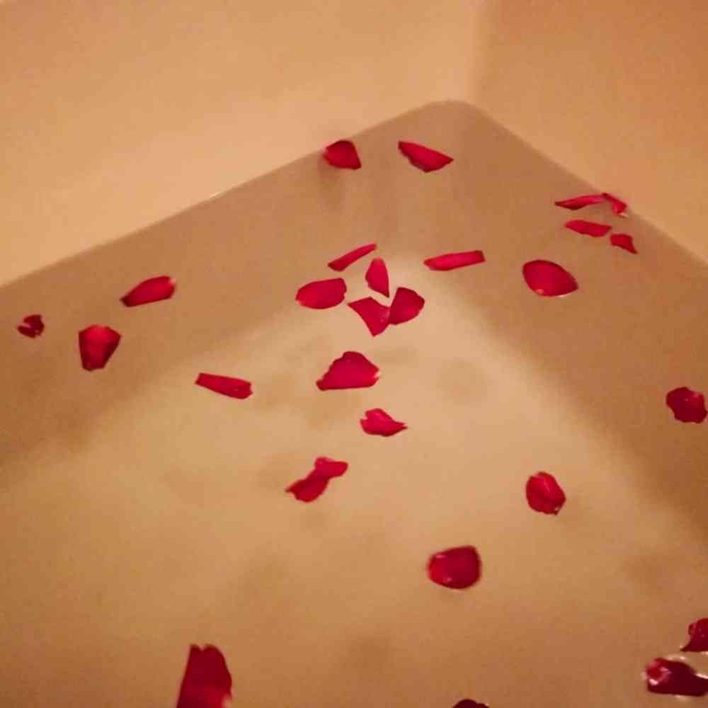 飾っていたバラが散ってきたのでお風呂に浮かべてみました(≖ᴗ≖ )♡