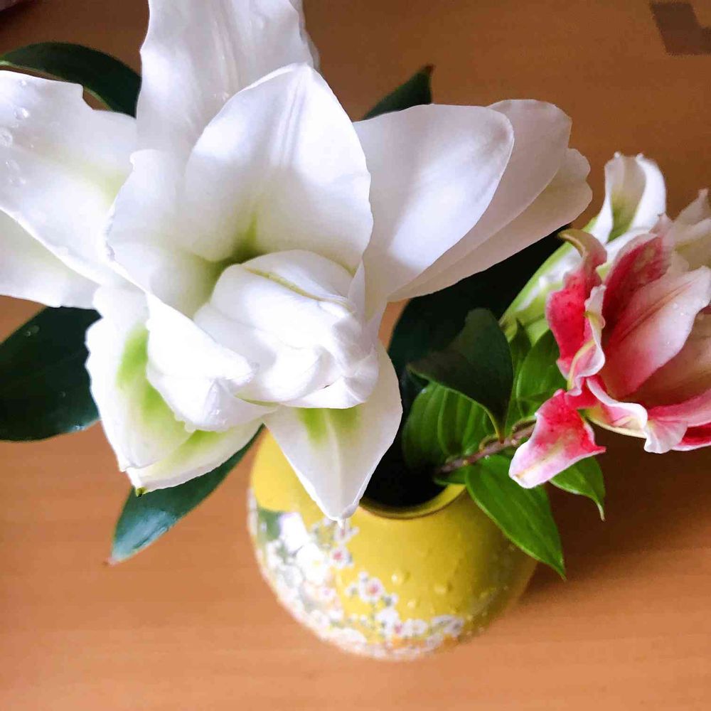 育てているオリエンタルリリー、カロリーナとサラを切り花にし、花の好きだった母へプレゼント