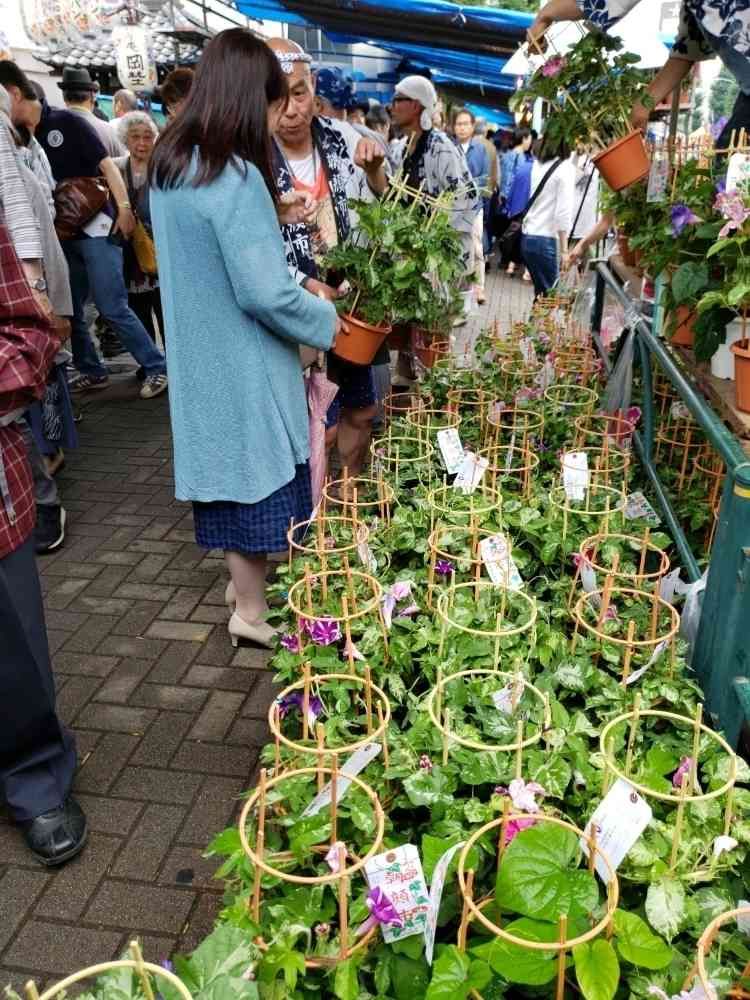 昨日から始まった下町入谷の朝顔市、お客さんが良いものを物色しています😃