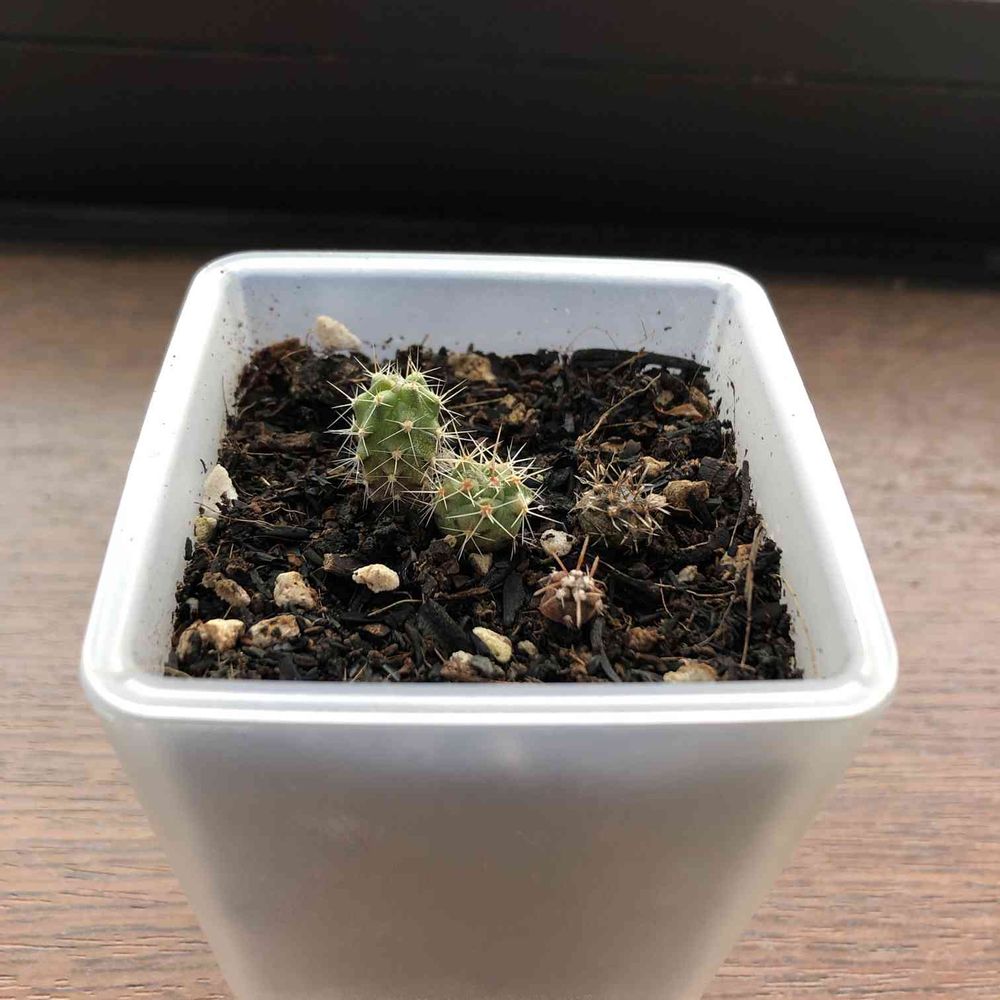 おひさしぶりの投稿です。種から育てている花サボ4兄弟。2つだけ青々と育っています。他の2つは枯れちゃったのかな?(´・ω・`)