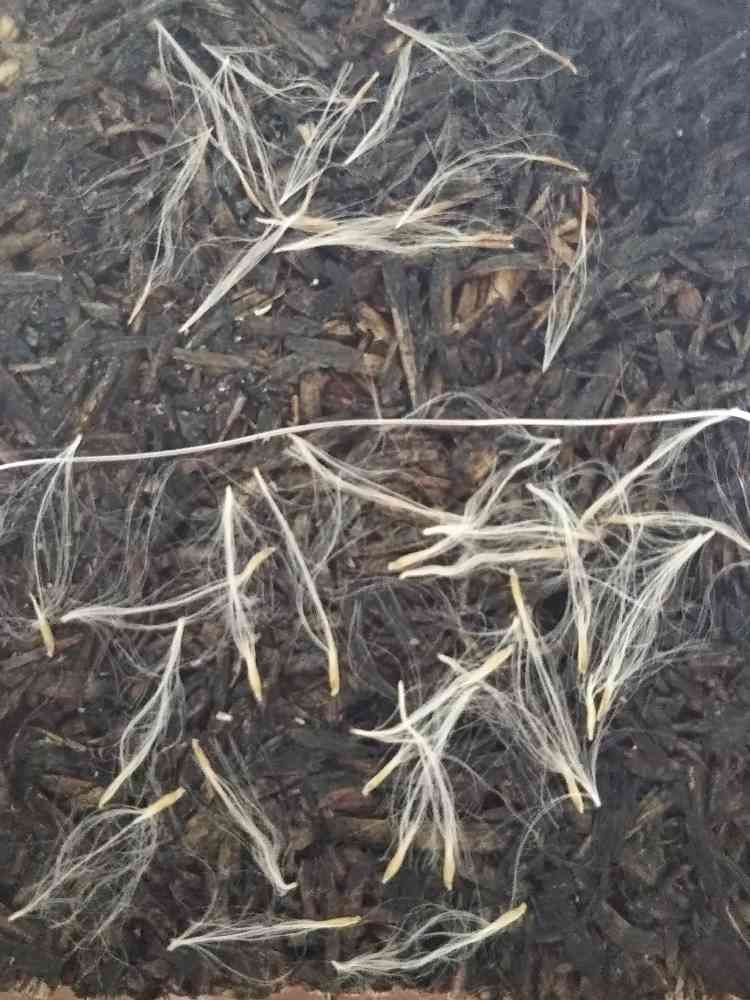 チランジアの種が取れました。アエラントスニグラに至っては見逃して種のほとんどが飛ばされてしまいました😅長さはほぼ同じですが、先端はカピラリスの方が小さいです。