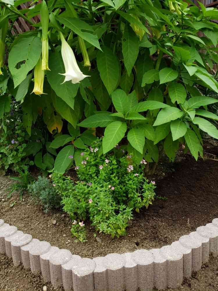 雨が降る度に土が流れて気になっていたエンゼルトランペットの根元を、ようやく囲む事が出来ました✧*。(ˊᗜˋ*)✧*。