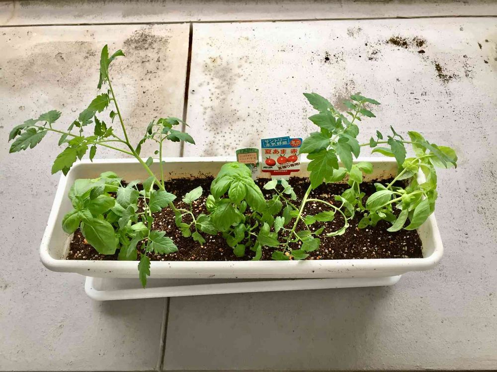バジルをトマトと植えてみた