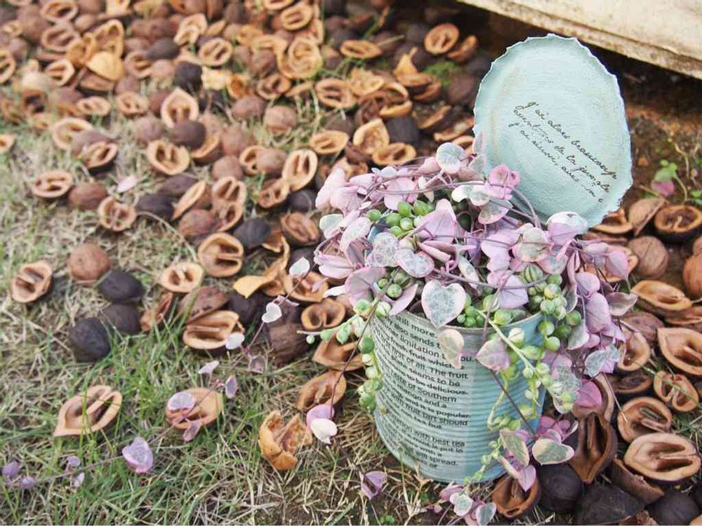 早速、ハートカズラと斑入りグリネを寄せ植え。