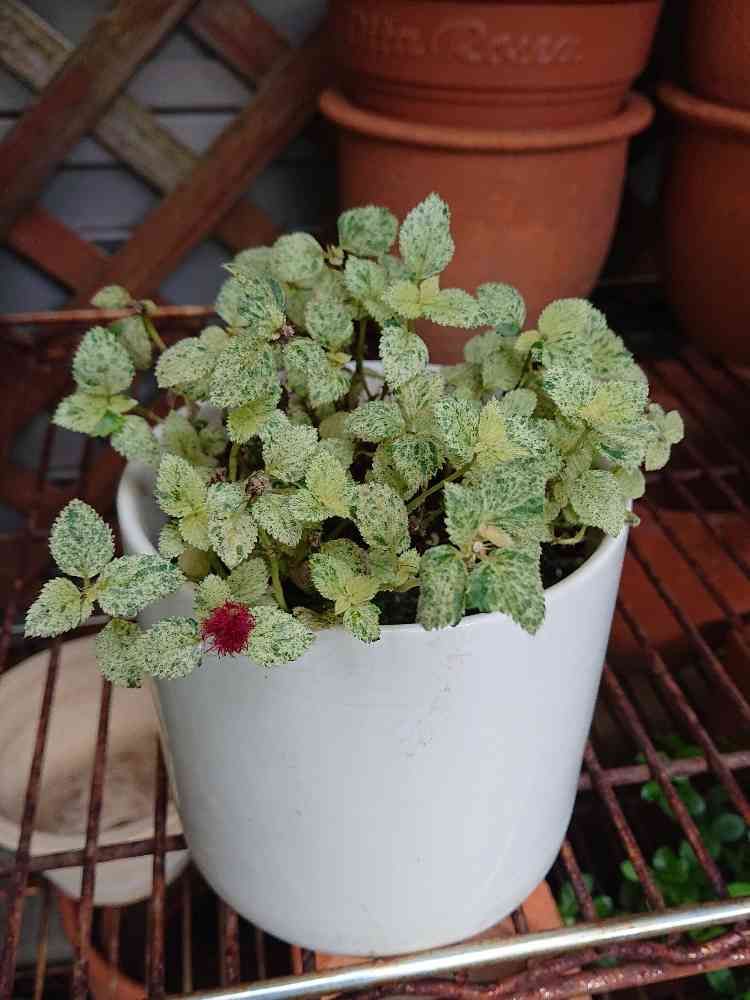 カラーリーフその3。斑入りの葉と赤のコントラストがかわいくて。でも、花がなくなってしまいました。。。