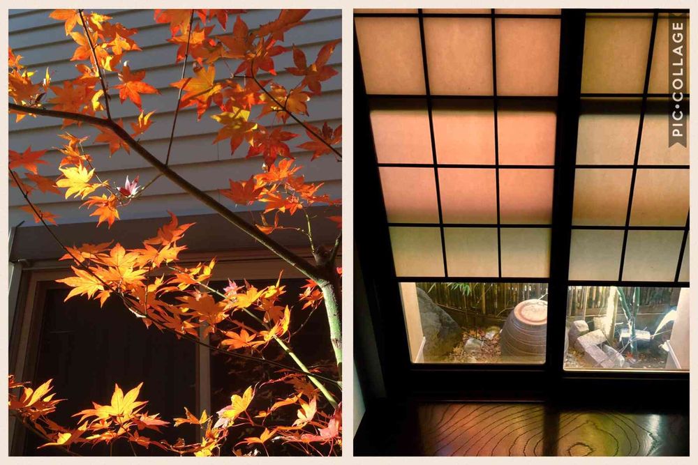 開けてみると紅葉を照らした光が障子に当たって真っ赤に…写真だとうまく写らないんですが💧