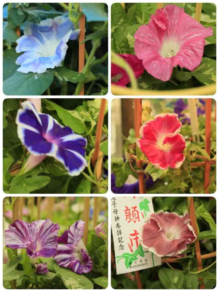 いろんな色合いの朝顔が有りますね😃やはり右下の団十郎が人気ですね😄
