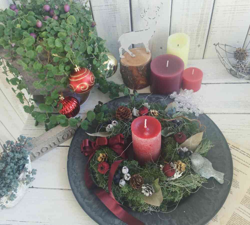 お花屋さんで購入したトレーにリースを✨