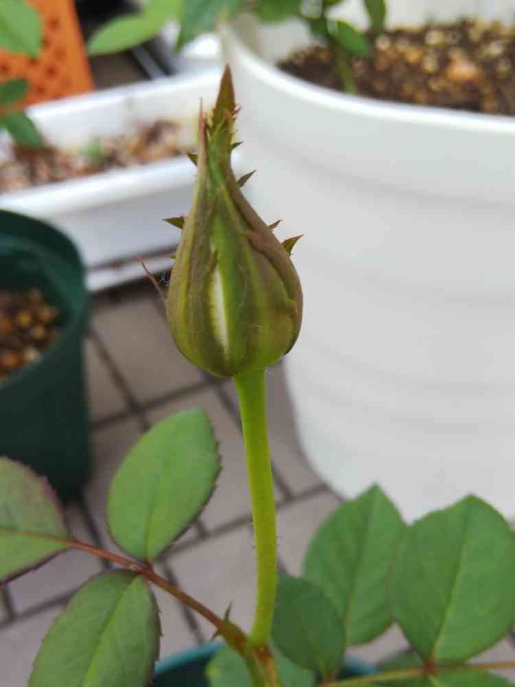 植え替えてから初の蕾が、大きくなってきて隙間から白が見えてます☺️