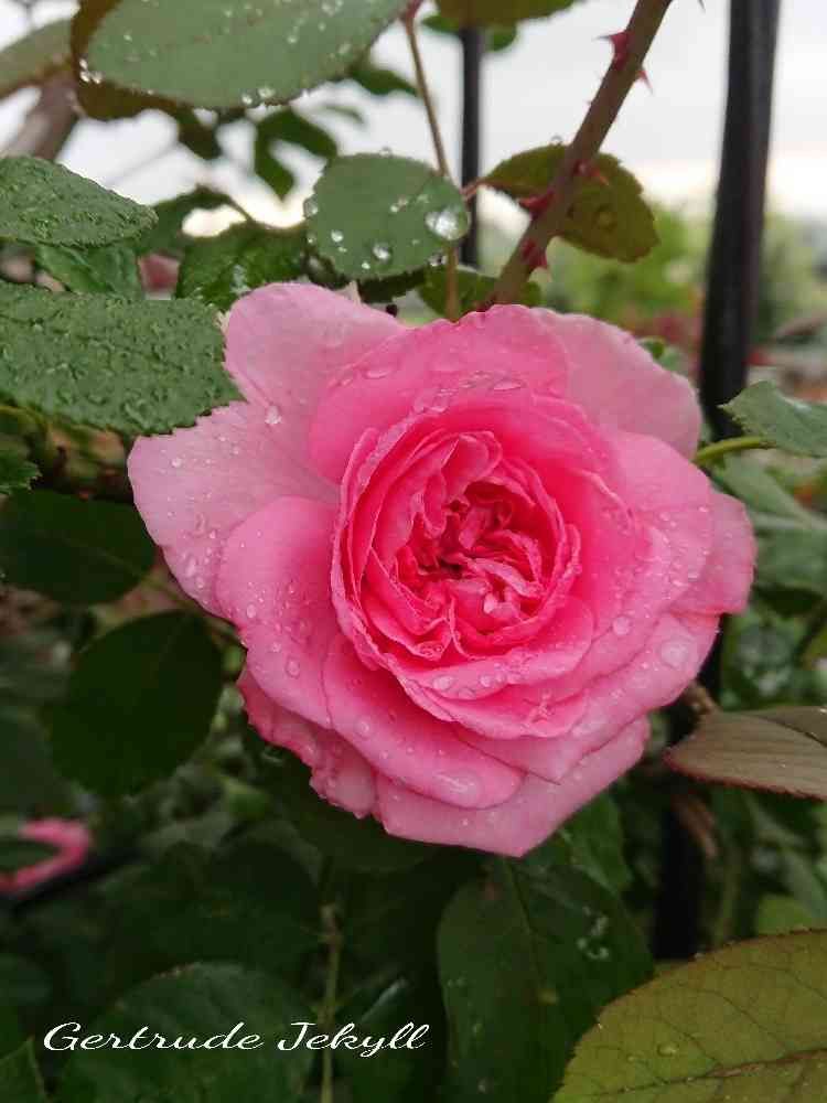 雨粒をまとった美しいガートルード・ジェキルさん、お花も葉っぱもともに美しくて素敵な眺めですね(✿︎´ ꒳ ` )♡︎