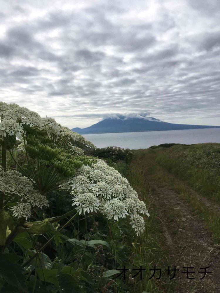 オオカサモチの向こうに見えているのが利尻富士です。残念ながら頂上が雲の中🧐