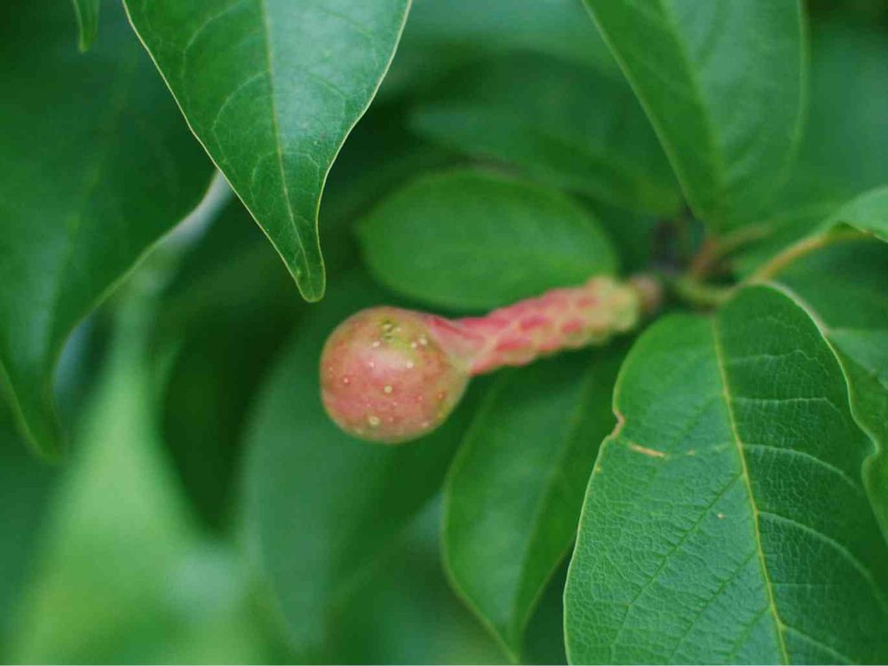 棒状の雌しべの先端部分だけが受粉したみたいです。