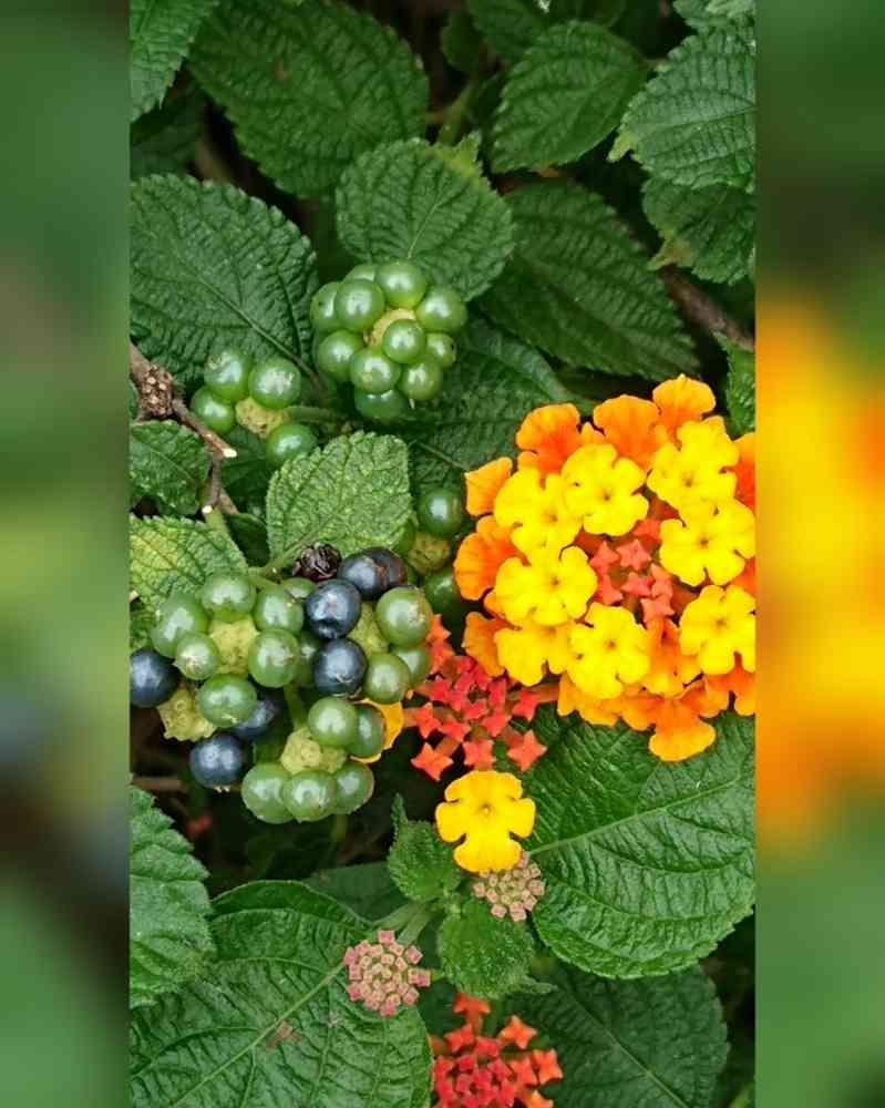 ランタナの花と実が一枚の写真📷に、仲良く収まりました❣️