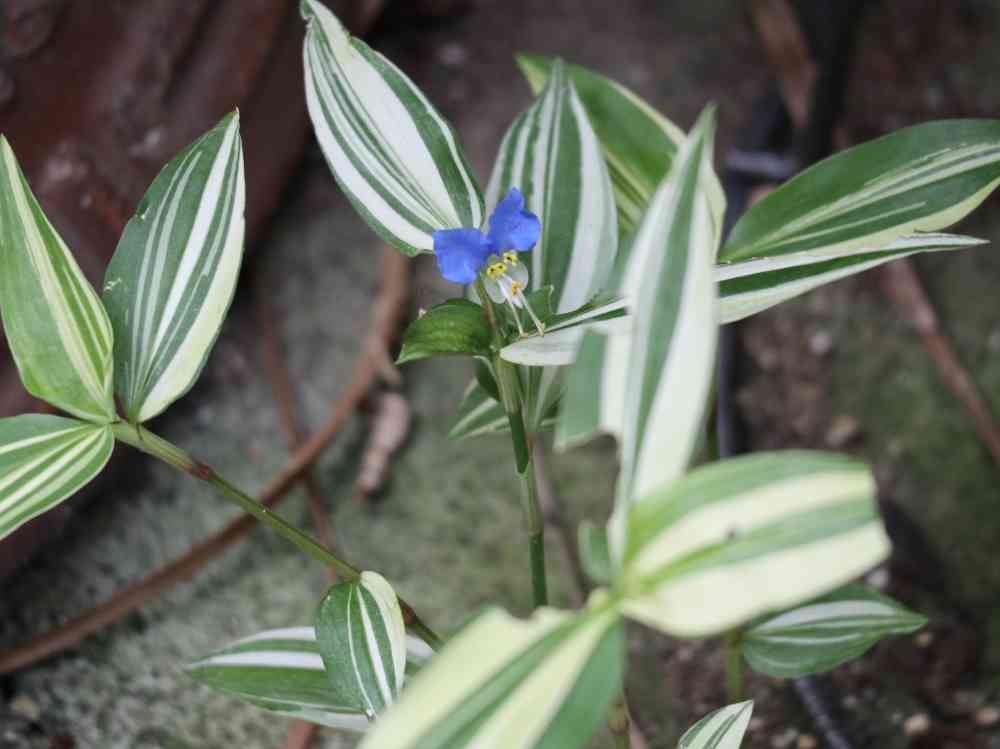 こぼれ種でコンクリートの隙間から芽を出して咲いている、斑入り露草