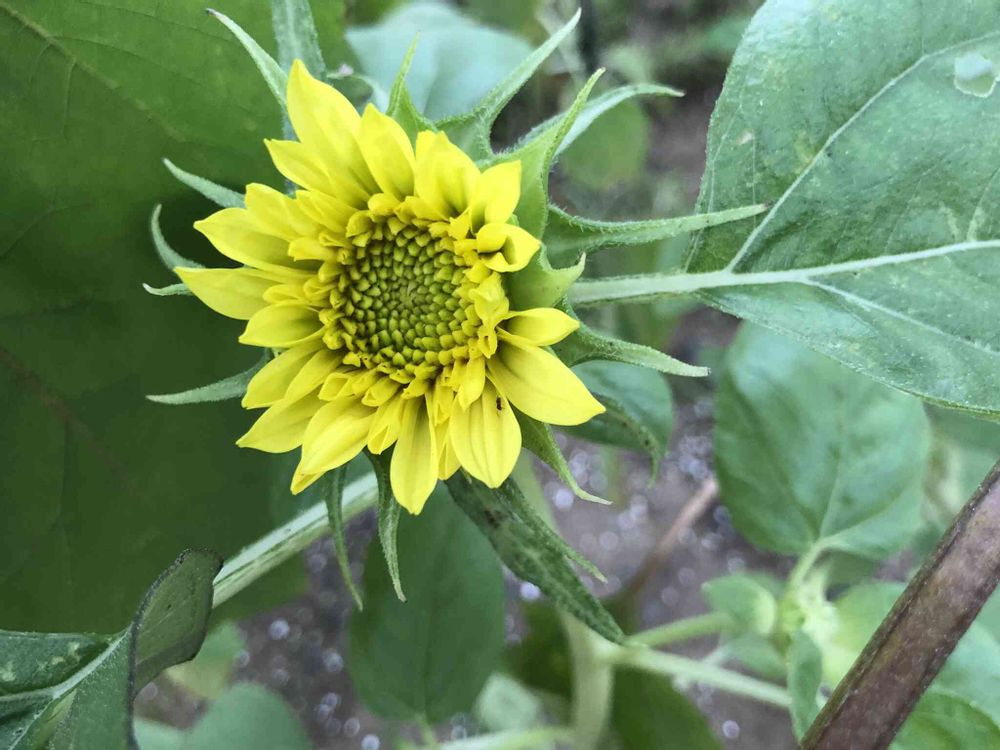 モネのひまわり 咲き始めています。レモン色が爽やかです。