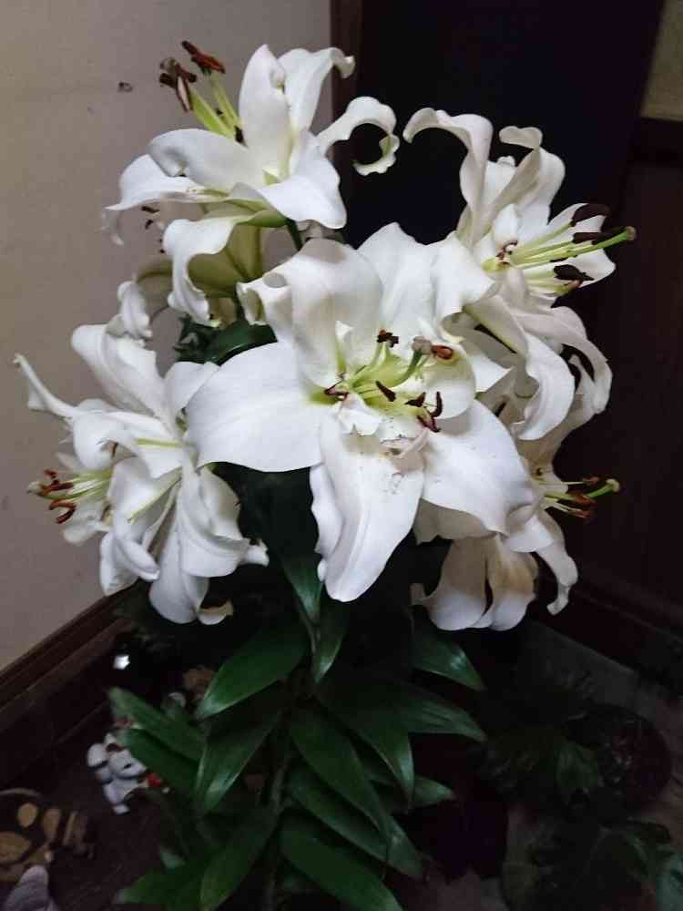 はい、以前も拝見していて、楽しみにしてました😃🎶。ウチにも、カサブランカによく似た一重の白い百合があるのですが、今年は虫にやられてしまって、花が一つ咲いただけでした😰。