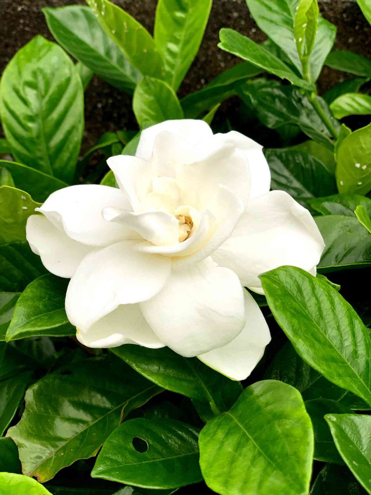 真っ白な形の良いなくちなしの花が、甘い香りを放って一輪咲いてた。