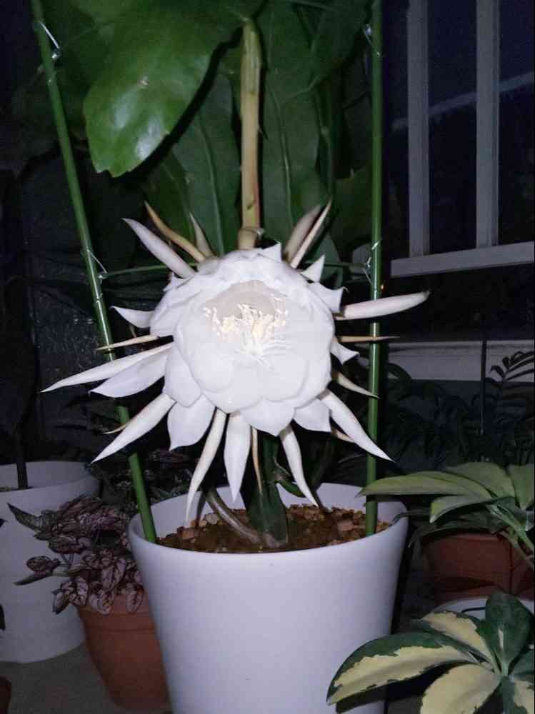 家の 靴べらのようなサボテンに咲いた花は 月下美人じゃないみたいです。がっかりです。