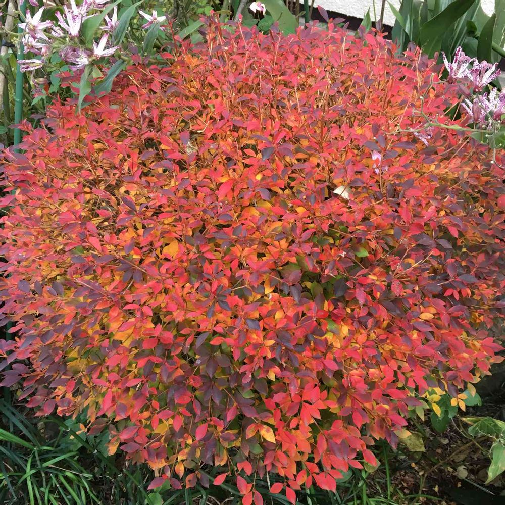 植わってる所が西側の秋冬はあまり長く日が当たらないので、なかなか真っ赤にはならないの。😅