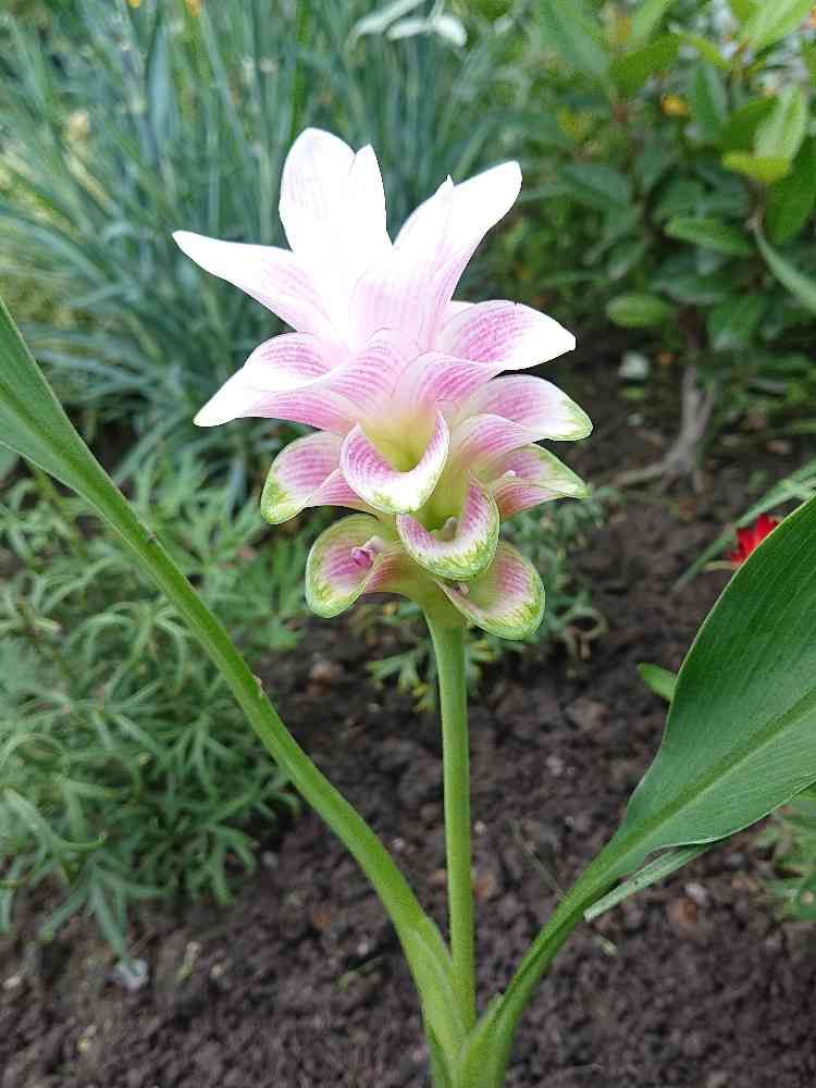 初めて育てる植物です。たくさん咲くとキレイかも。「クルクマ」タグを辿ってみたけど、ほとんどが切り花ですね。群生してるのを見てみたい。