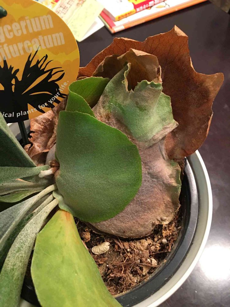 ビカクシダの茶色くなった貯水葉はとっても大丈夫ですか?