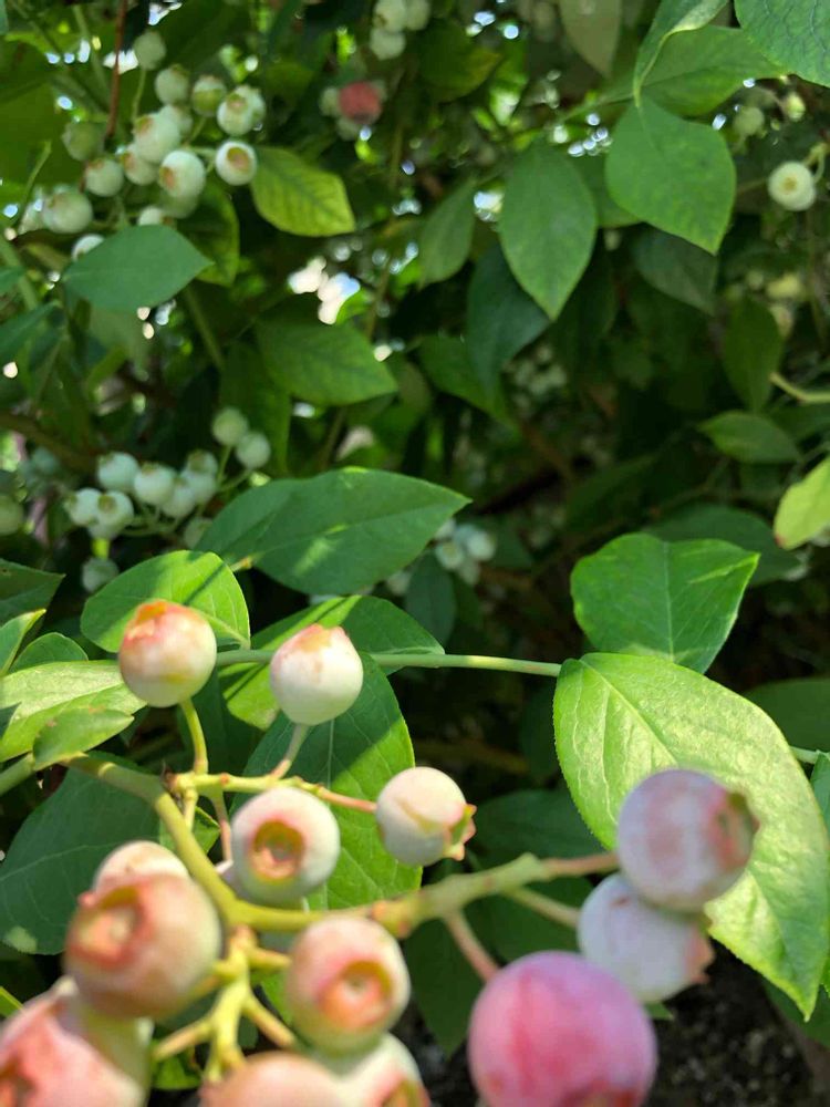 イヴさんのブルーベリー、沢山成っていますね❣️ きっとゆっくり色づきますよ✨
