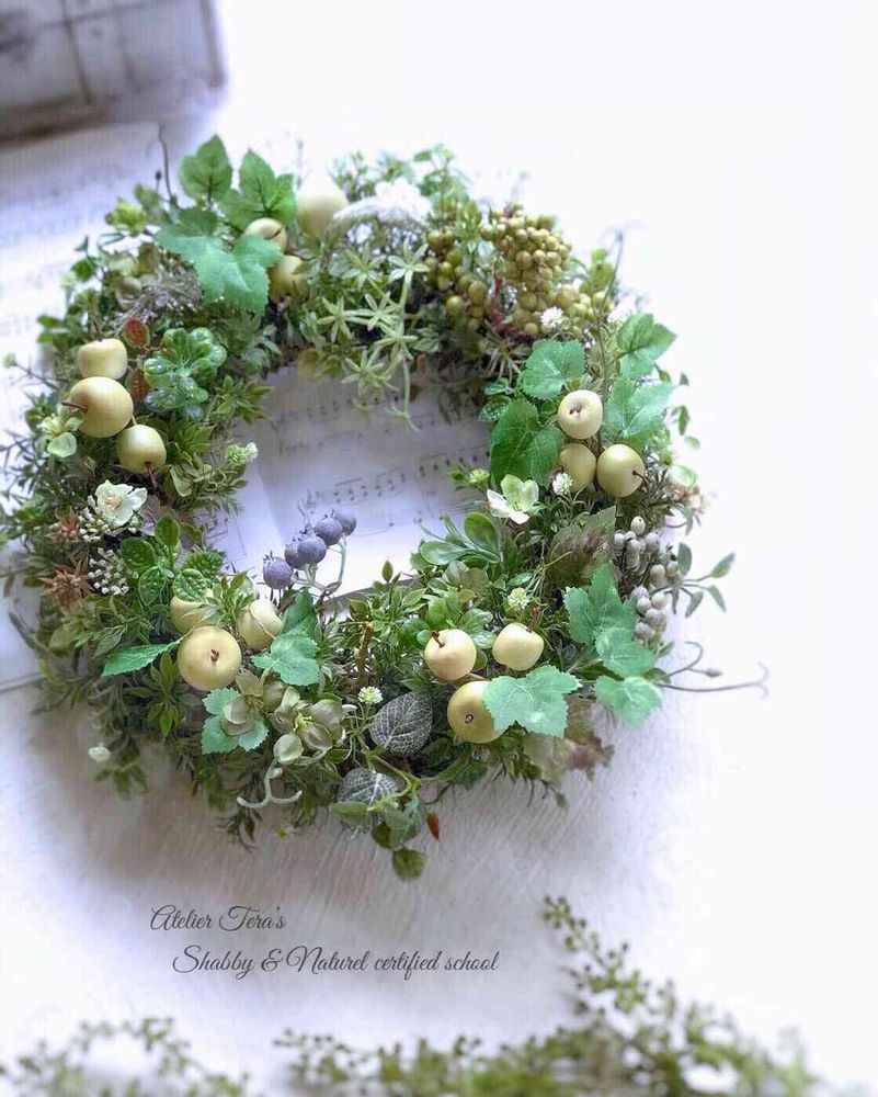 素敵な色合いのリ-スで癒されます🎶青リンゴが可愛いですね