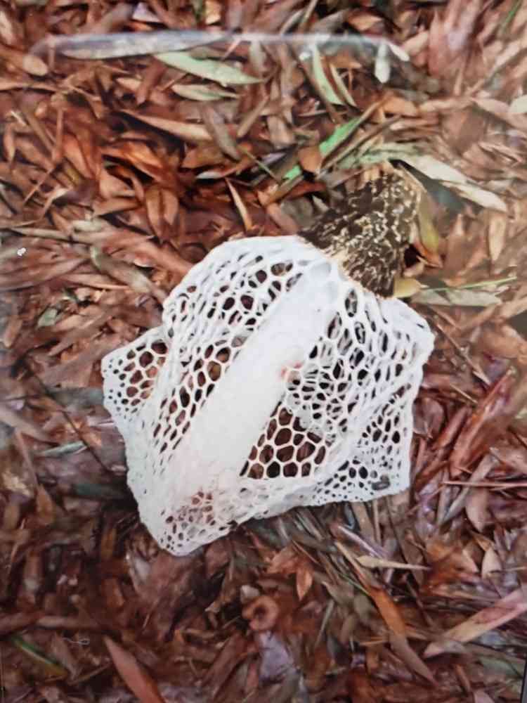 この白い網を纏っているキノコさんはキヌガサタケ🍄で 中国料理 中華料理に使われる高級食材かな?