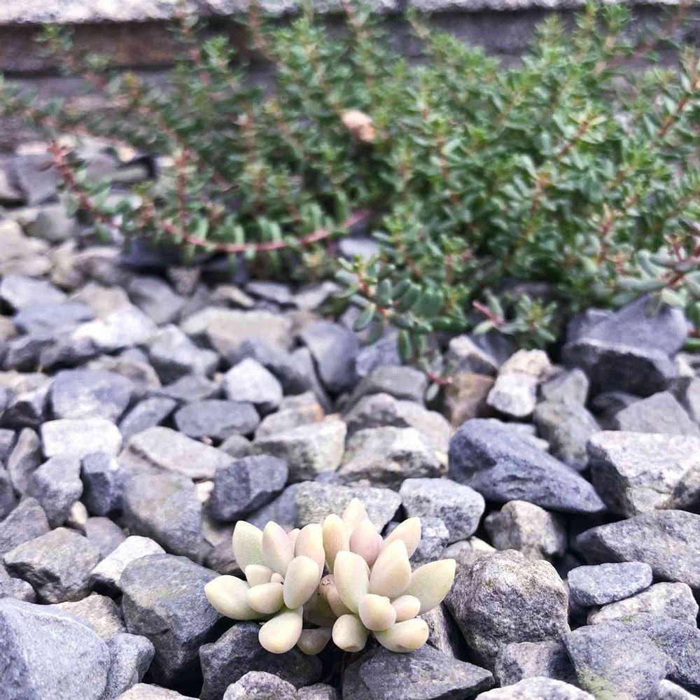 ふと足元を見たら、玉砂利の隙間に根付いてる