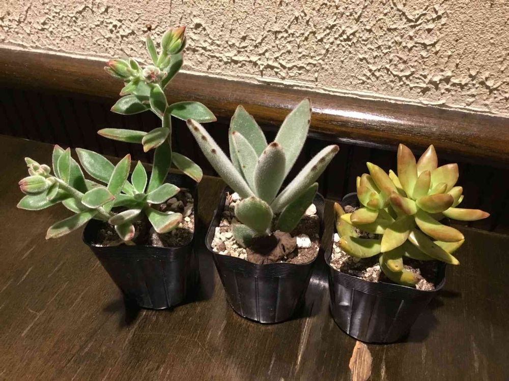わたしも先日、狩ってきたばかりなのでたぶん同じだと思うんですが、真ん中が月兎耳ではないでしゃか?でも多肉って似ていて全然名前が違ってたりするので自信ないです(*´ω`*)