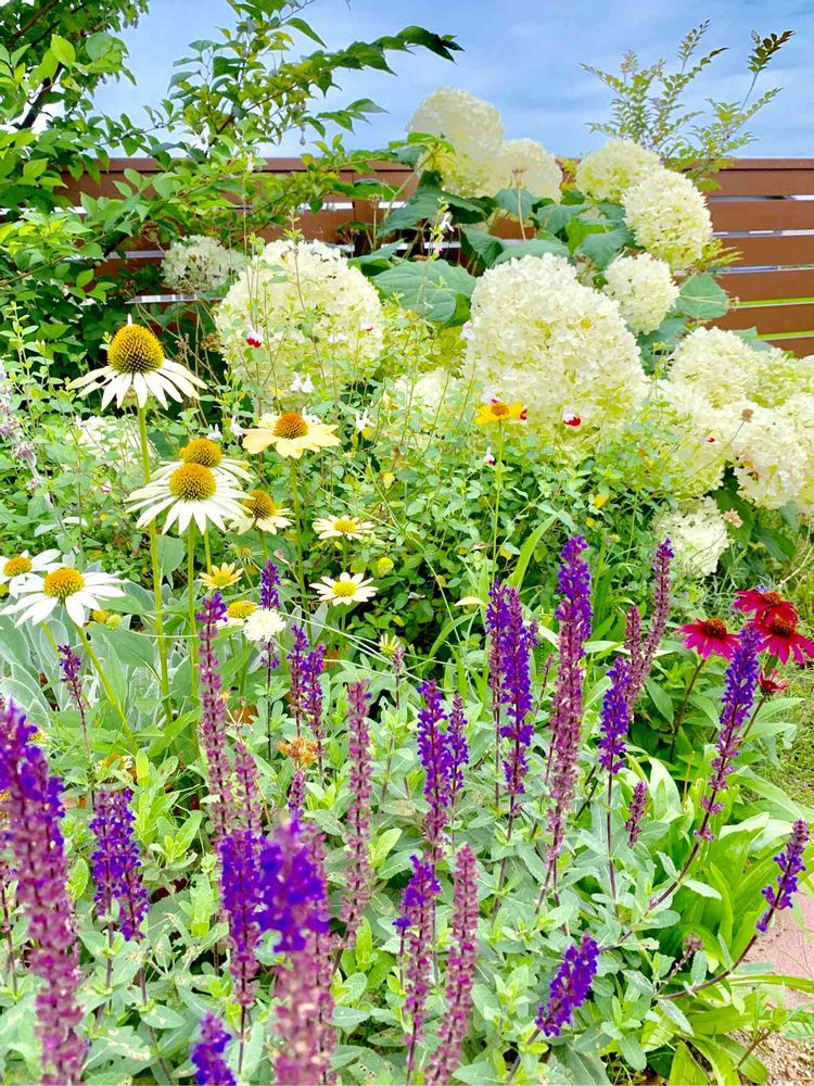 これは2週間ほど前の写真ですが、今はアナベルが雨で更に倒れてきたので、切ってスッキリしようかなーと迷っています😁💦エキナセア達は変わらず元気🎶夏花壇の頼もしいお花ですね🌼