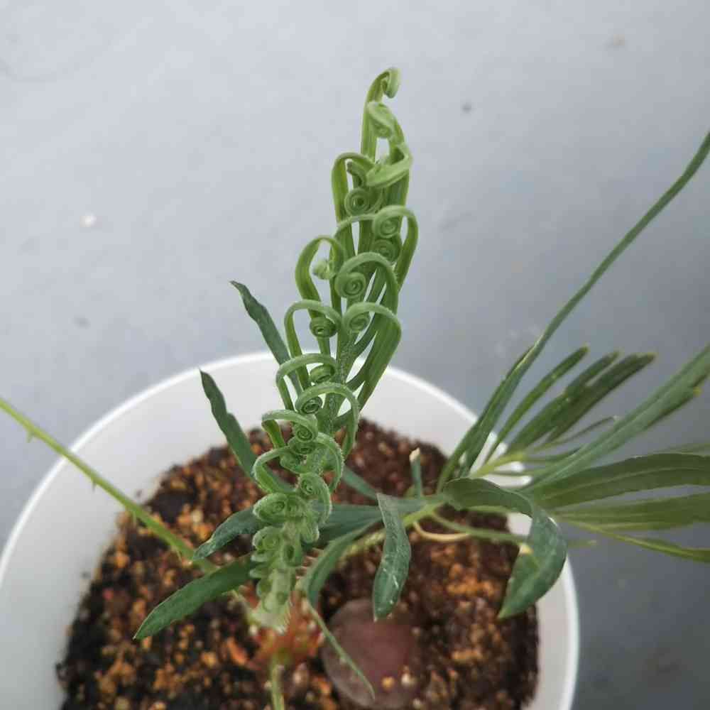 1年に2枚しか葉っぱが出ないソテツ。なのに今年は2枚のうちの1つが枯れてる…😭