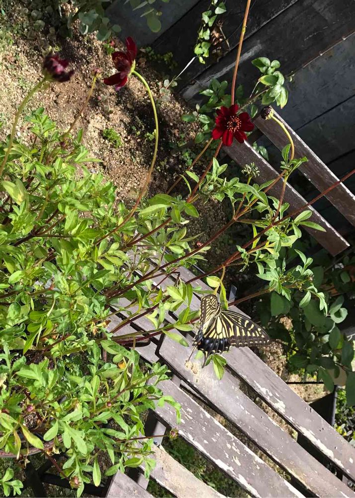 お隣の庭に夏蜜柑の木があるので、そこで育ったアゲハチョウが、我が家の庭に遊びに来てくれるのですが、なかなかシャッターチャンスに恵まれません😅