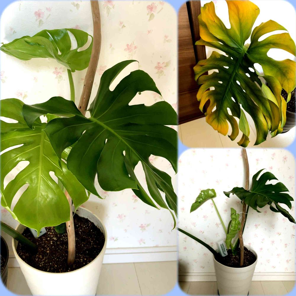 近所の太っ腹おばちゃんから頂いた。。。モンステラ。。。植え替えをしましたが……1番大きな葉っぱが黄色になってきたので✂️(´>ω<`)✂️カットしました😔