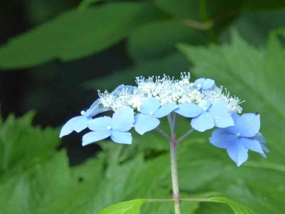 水色ののガクアジサイ、とても綺麗ですね。うちのは、ピンクでしたよワン🐶
