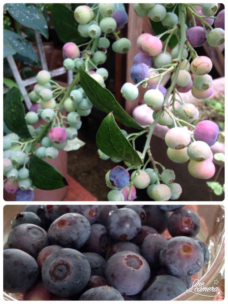 可愛いブルーベリー💕と今日収穫したブルーベリー💜