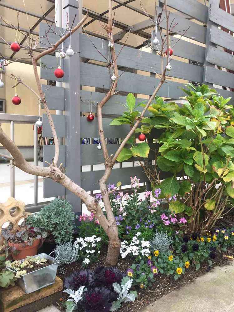 休眠期のスモークツリーをデコレーション🎄お花いっぱいのChristmasを迎えれるな🌸(ストック、メネシア、イベリス、プラチーナ、葉牡丹、シロタエギク、ビオラ)╰(*´︶`*)╯♡
