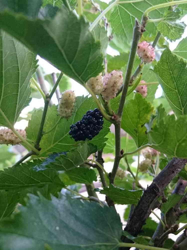 桑の実が少しずつ熟してきました。甘くて美味しかったです。地味に庭で採れる果物のうち、一番甘いかもしれません。
