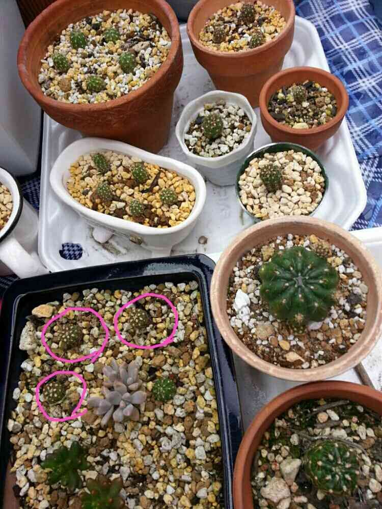 丸の中の仔は、6日に親から放し植えました。他のは去年の仔です。他のところに4個、それが大きいので、最初にはずした仔だったのかも。