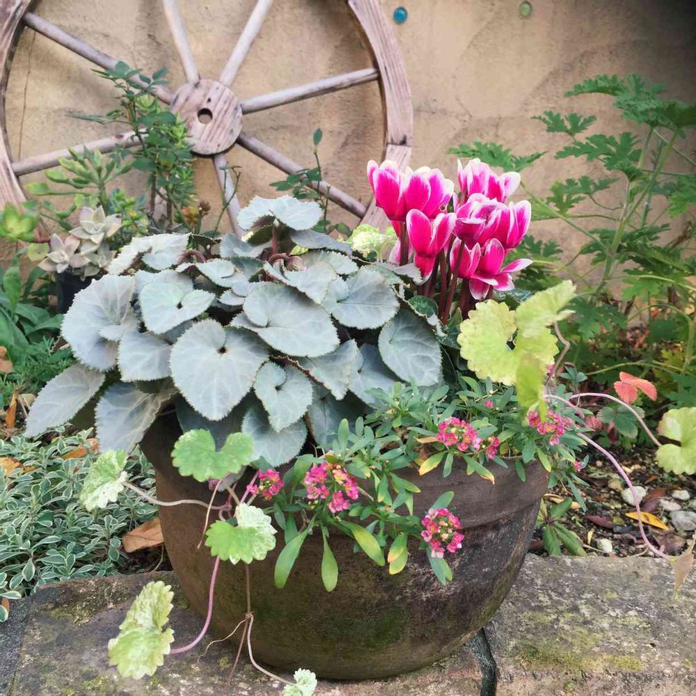 今は、一緒に寄せたもう1つのシクラメンと株分けして植えたアリッサムが、花壇を明るくしてくれてます💕