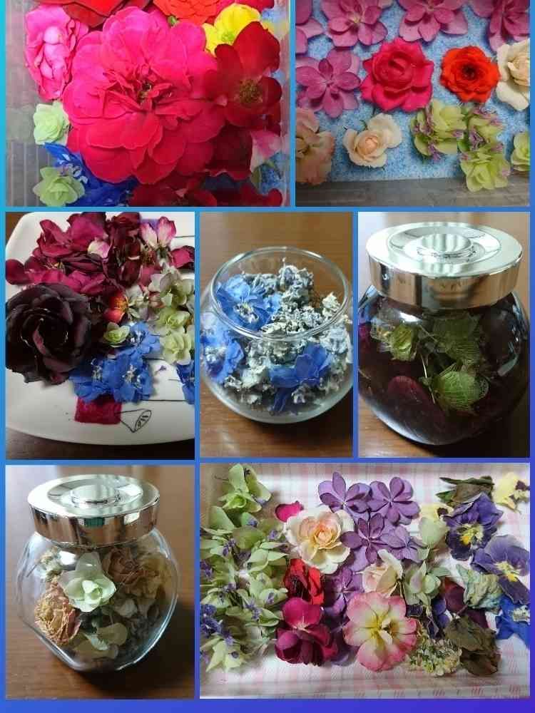 初めてシゲリカルを使ってドライフラワーを作り、真ん中右のようにハーバリウムに仕上げました。