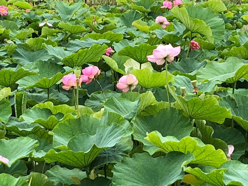 ちょっと寄り道、小雨の中、公園の池に咲いたハスの花がキレイでした。