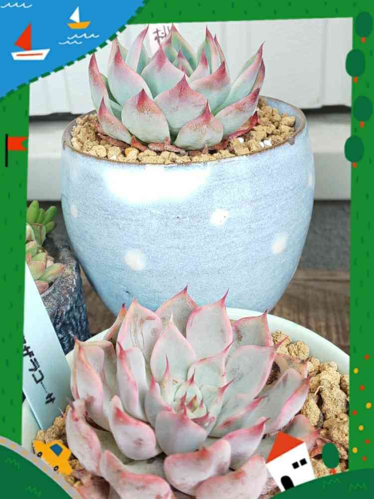 外からの邪気を家に入れないように玄関先で爪を光らせる⬆桃太郎と⬇ピンクザラコーサ